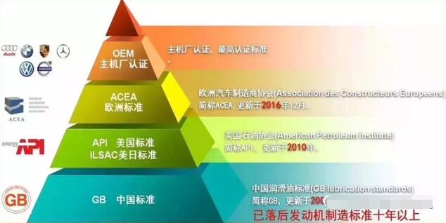 開門見山,先說潤滑油 體系的“鄙視鏈”:OEM主機廠 >歐洲ACEA標準>美日API/ILSAC標準>GB中國標準。