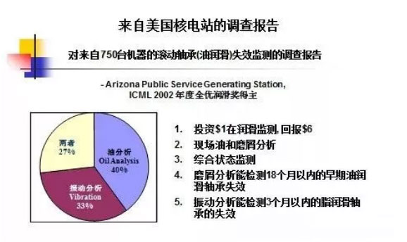 潤滑管理是設備管理的重要內容,綜合應用理化分析、光譜分析、鐵譜分析技術,使潤滑管理開始由定性向定量轉變,由經驗判斷向儀器監測轉變,提高了潤滑管理的技術含量,這是科學管理設備的必然要求,理化分析為油品選型及按質換油提供了依據;光譜分析能快速反映各種磨粒濃度及掌握設備劣化趨勢;而鐵譜分析則能確定異常磨損顆粒的特征,三者的有機結合,為判斷設備的潤滑狀態、確定磨損的部位和磨損程度、開展預測維修提供了科學依據。