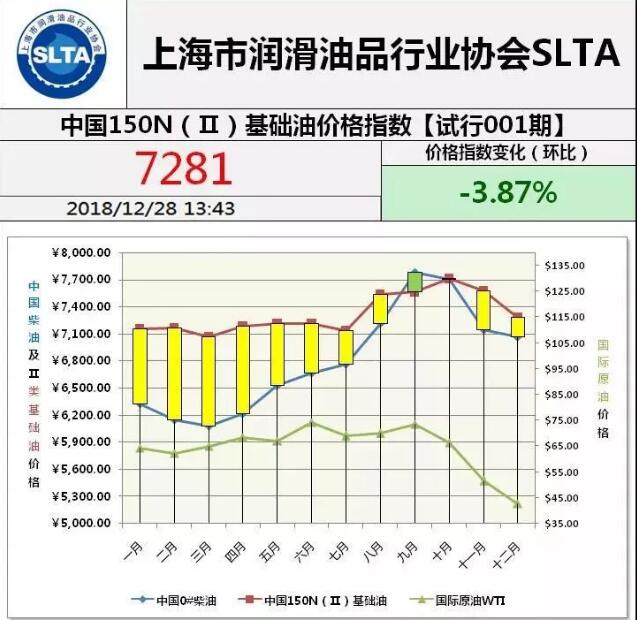 2018年12月28日,上海市潤滑油品行業協會(SLTA)正式發布“中國150N(II)基礎油價格指數【試行001期】”。