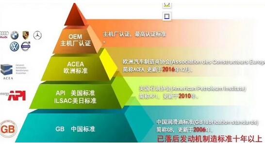 因為他們與****機油 標準相距甚遠,通過下方的金字塔,你就明白這個含義,會發現汽車廠 (OEM主機廠 ),才是的金字塔上層。但這些 的顯示,一般就是機油桶背面的一排不起眼的小字。