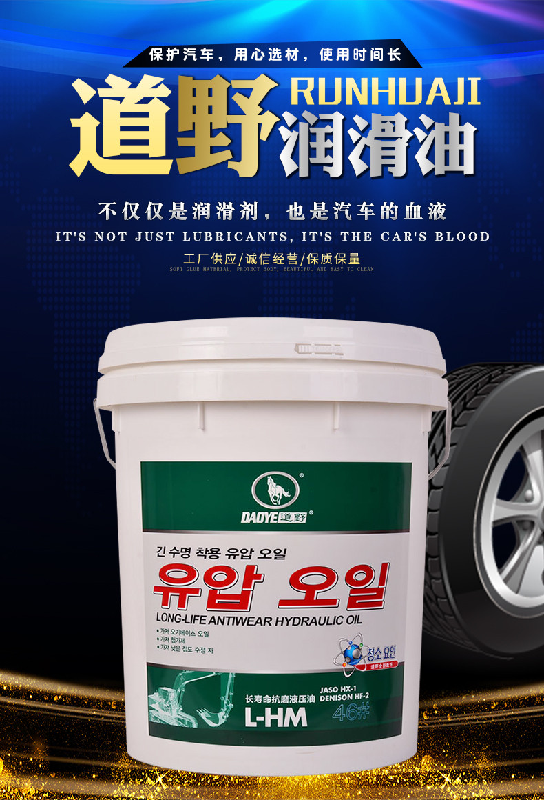 道野液壓油具有抗氧性及防銹抗腐性、專為各種車輛及工程機械、建筑機械等的液壓系統設計。采用全合成高品質基礎油和進口添加劑,能為重負載下工作的液壓系統提供優異的抗磨保護。更具有普通液壓油2倍以上的使用壽命。