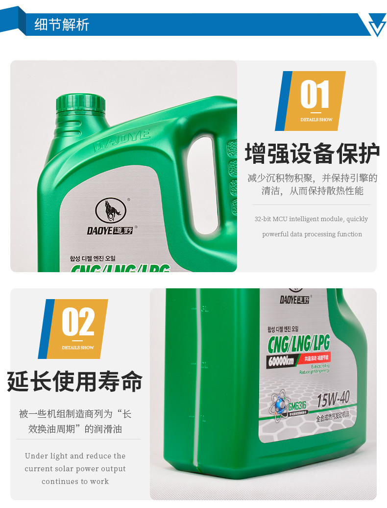 ●適用于沃爾沃、德國曼、中國重汽、一汽解放、福田歐曼、東風商用車、北奔、濰柴、玉柴、上柴、東風康明斯、錫柴等燃氣發動機,特別適用于安裝有顆粒捕捉器DPF、EGR廢棄再裝置循環的車型有效延長發動機的使用壽命。品質符合康明斯CES 20085、底特律柴油機公司93K216、沃爾沃商用天然氣發動機;適用于要求MB 226.9 規格機油的發動機。