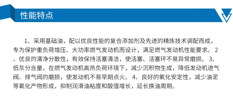 ●采用進口基礎油,配以高性能的復合添加劑及先進的精煉技術調配而成,專為保護重負荷增壓、大功率燃氣發動機而設計,滿足燃氣發動機性能要求。 ●優異的清凈分散性,有效保持活塞清潔,防止活塞、活塞環異常磨損。 ●低灰分含量,在燃氣發動機高熱負荷環境下,減少沉積物生成,降低發動機進氣閥、排氣閥的磨損,防止發動機早期點火。 ●良好的氧化安定性,減少油泥等氧化產物形成,抑制潤滑油粘度和酸值增長,延長換油周期。